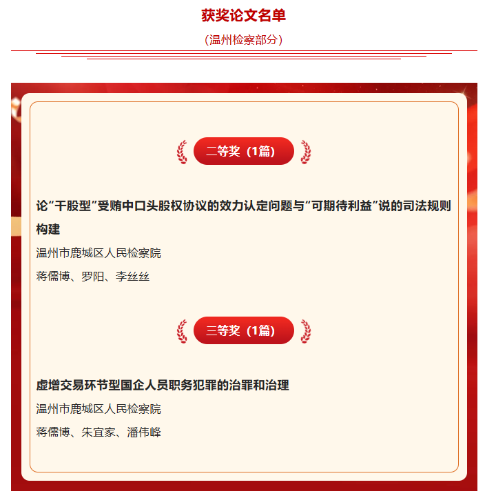 温州检察2篇论文获奖!职务犯罪疑难案例与实务研讨会征文获奖名单公布