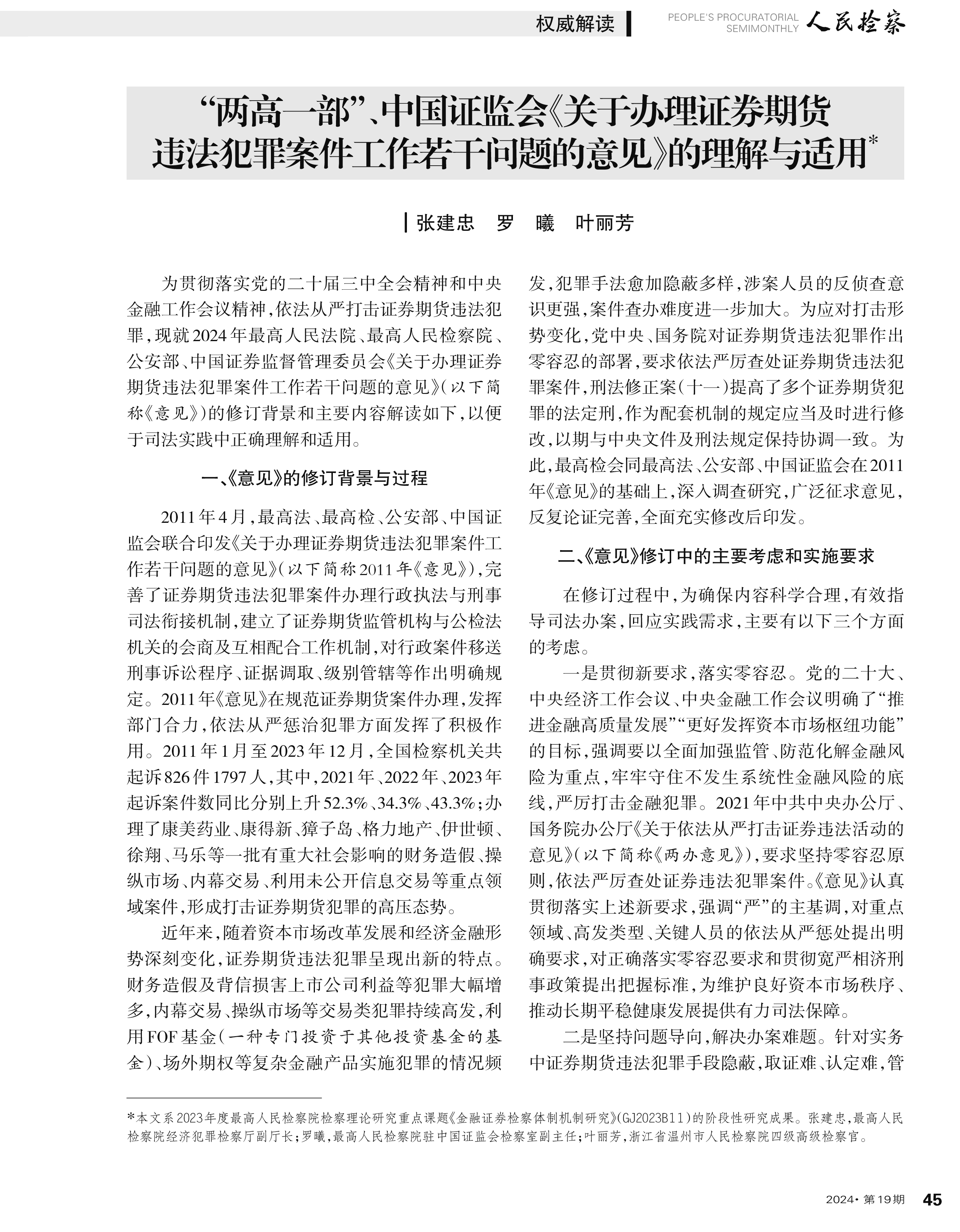 “两高一部”、中国证监会《关于办理证券期货违法犯罪案件工作若干问题的意见》的理解与适用_张建忠-1