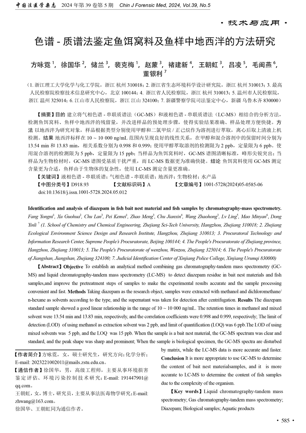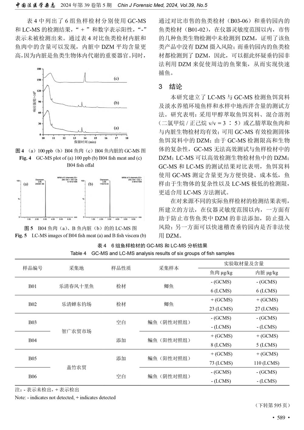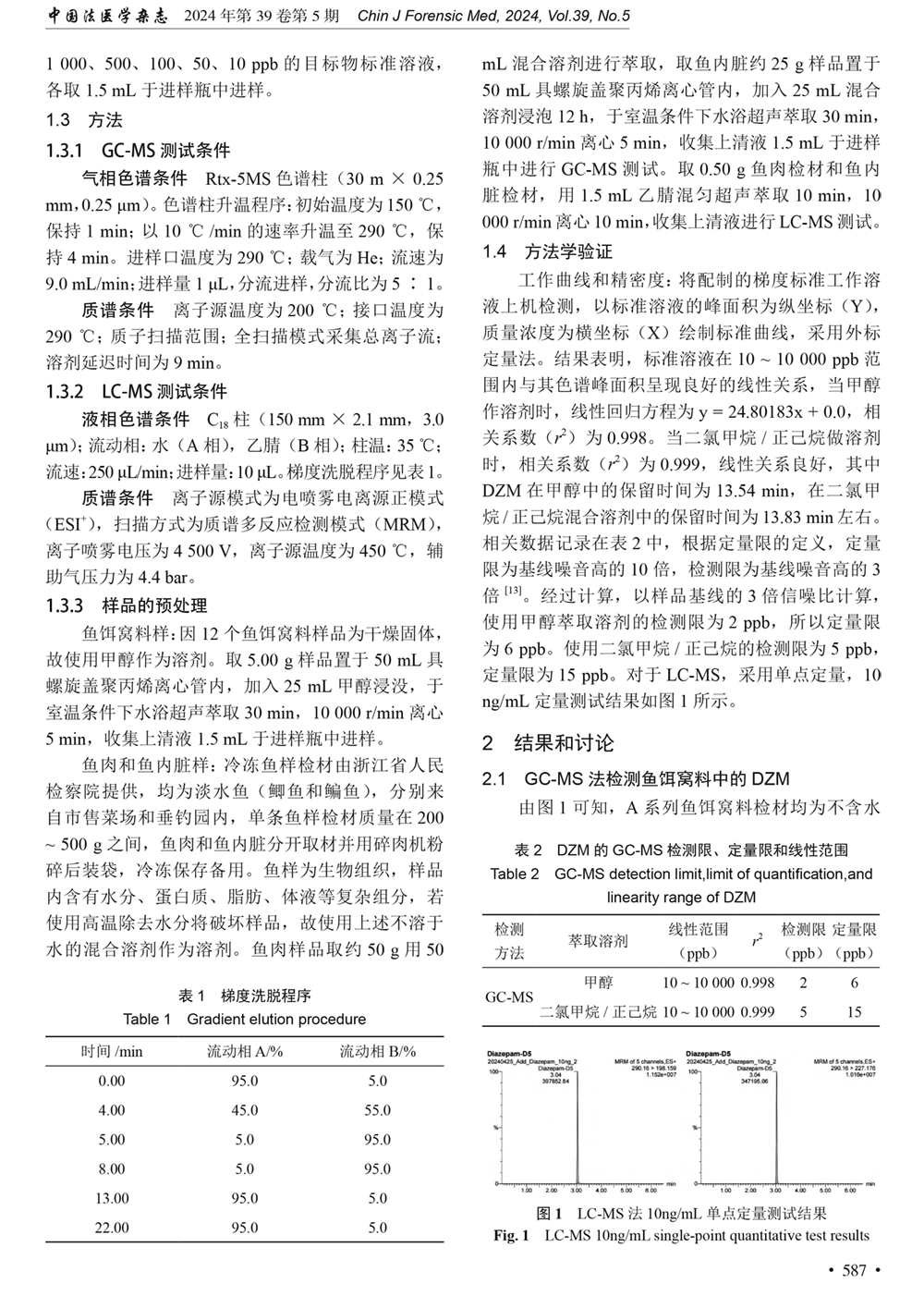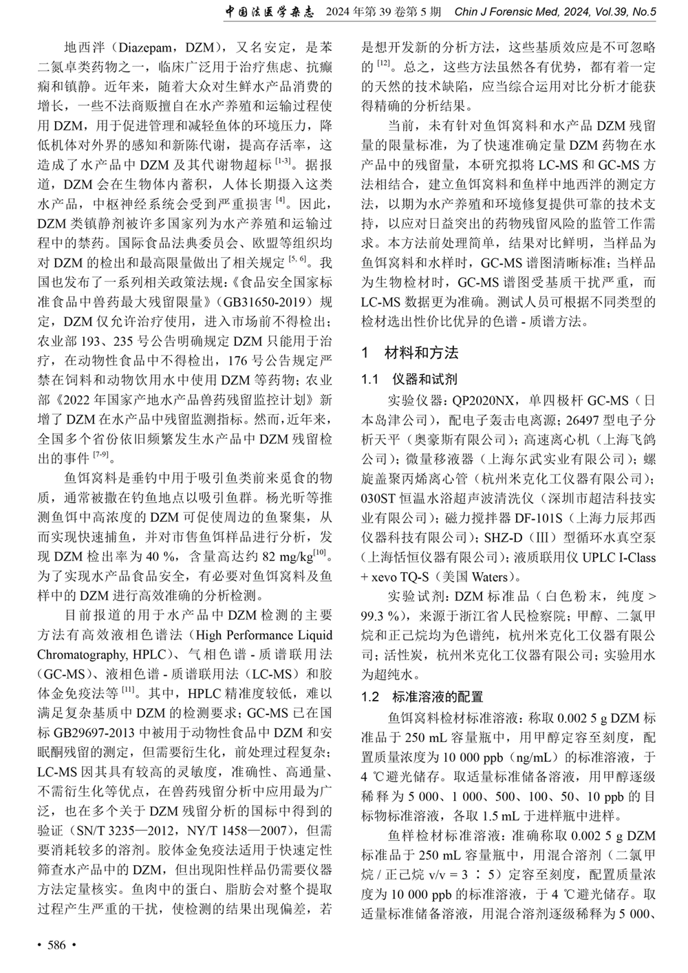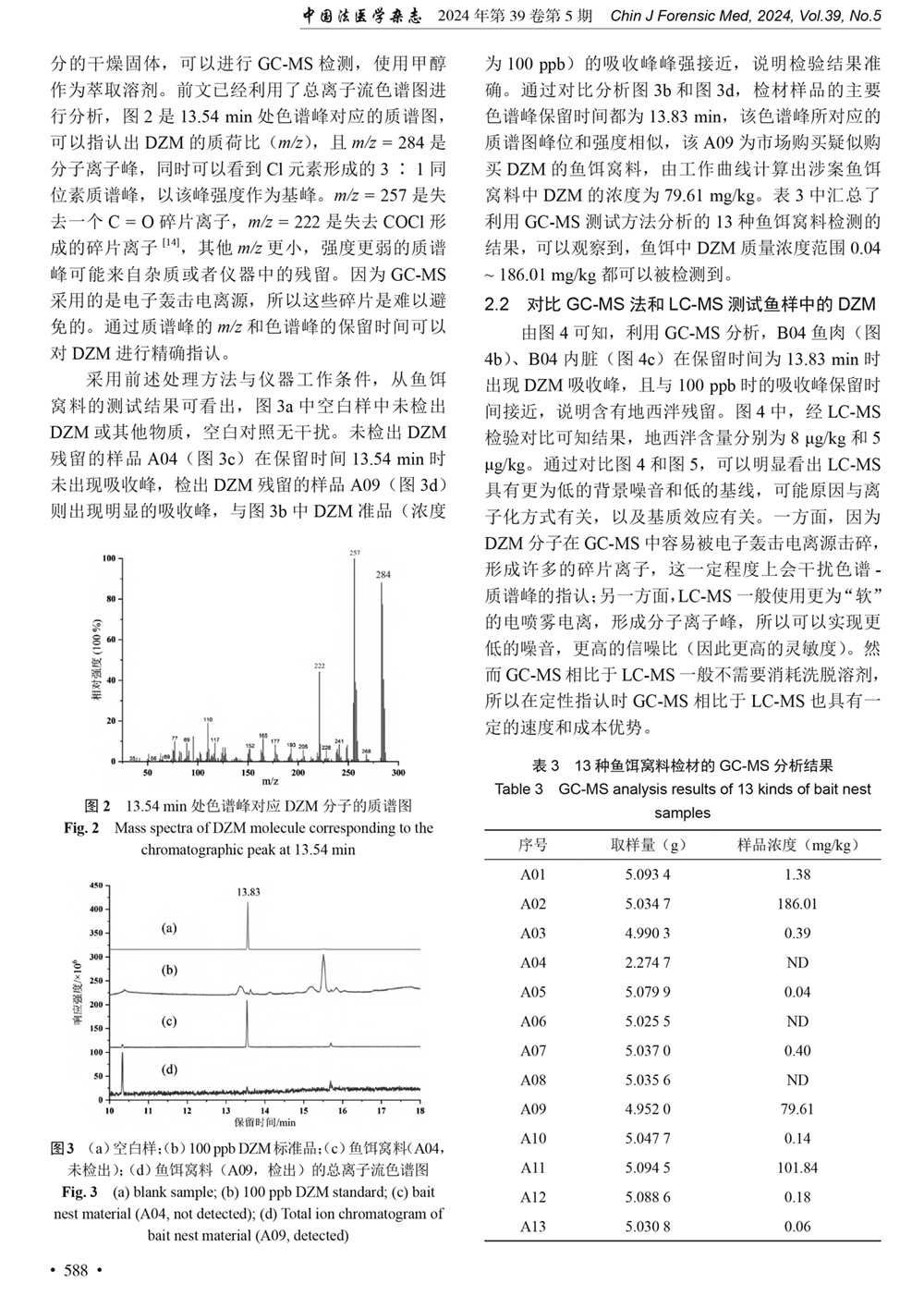 色谱-质谱法鉴定鱼饵窝料及鱼样中地西泮的方法研究