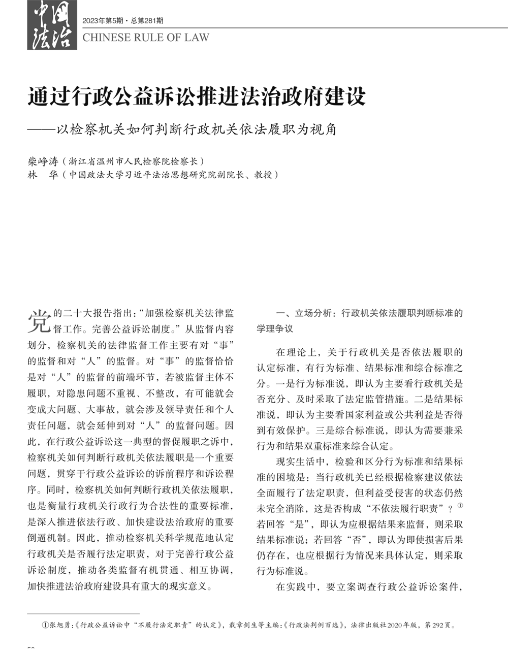 通过行政公益诉讼推进法治政府建设——以检察机关如何判断行政机关依法履职为视角