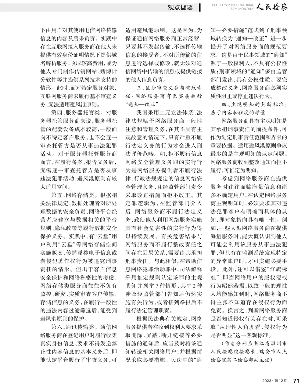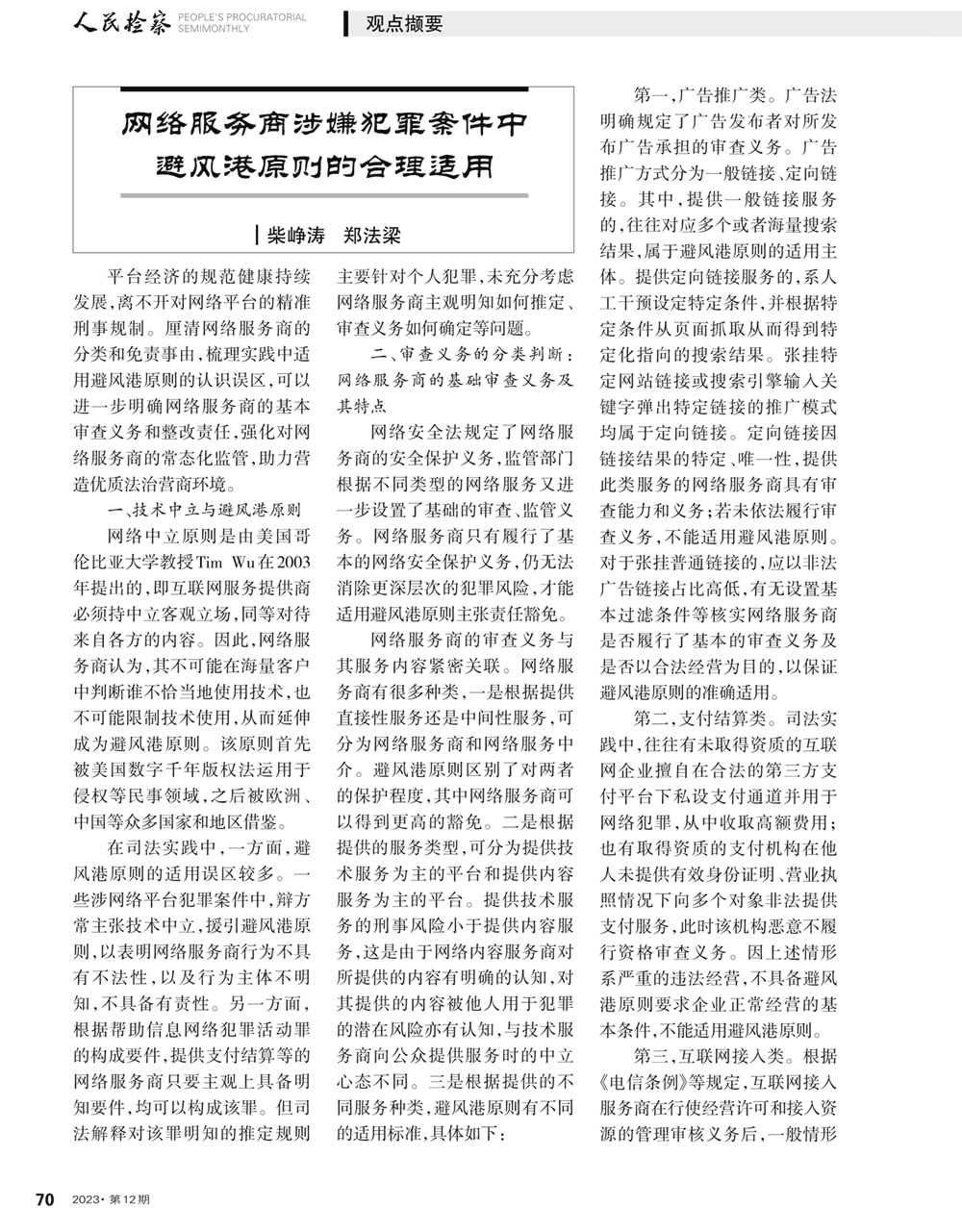 网络服务商涉嫌犯罪案件中避风港原则的合理适用