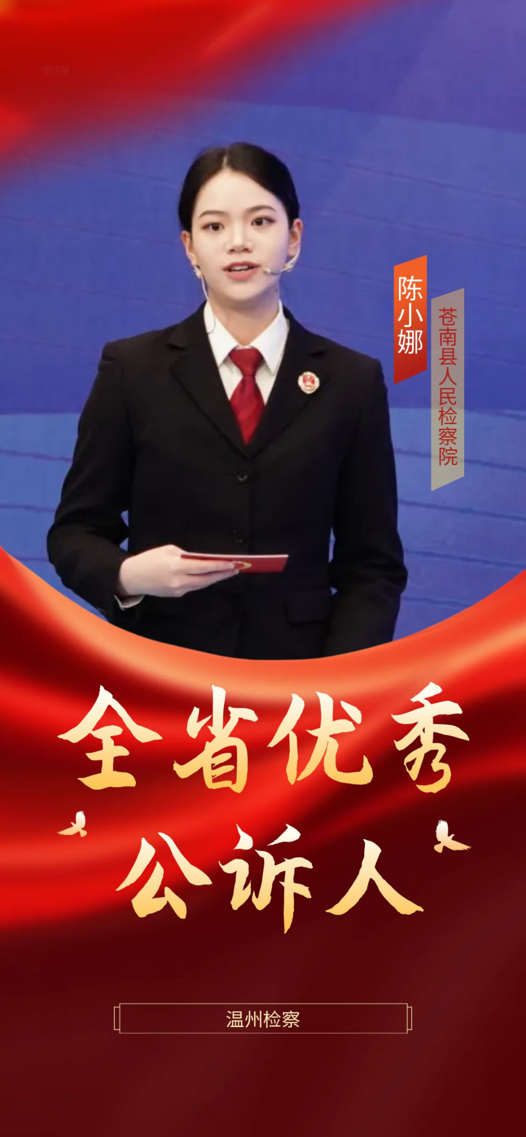 陈小娜,现任苍南县人民检察院第一检察部副主任。长期奋战在刑事检察办案一线,严谨务实,恪尽担当,曾获评“温州市检察机关优秀公诉人”,并多次荣获苍南县委、县政府嘉奖。累计办理各类刑事案件数百件,多起属于重大疑难复杂案件,锤炼了过硬的业务能力与实战水平。如在办理郑某某等人特大非法盗采海砂案中,及时提前介入,围绕“采、驳、运、卸、销”等环节引导侦查机关全面收集、固定证据,完善证据链条,最终实现对“采、运、销”全链条打击,分批起诉57人,通过立案监督追诉漏犯10人,并同步制发检察建议,推动案件背后社会问题系统治理,切实守护人民群众的碧海蓝天与美好家园。同时,积极践行“指控犯罪+社会治理”的融合路径,以高质效办案推动源头治理,生动诠释了新时代检察官“治罪与治理并重”的专业智慧与使命担当。