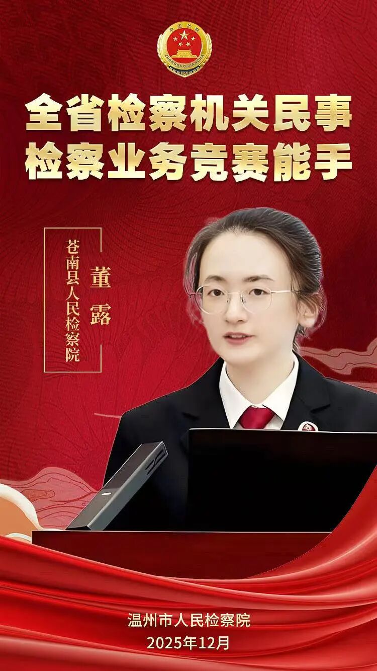 董露,现任苍南县人民检察院第四检察部五级检察官助理。从检四年来,始终以勤勉务实、精益求精的态度投入工作,恪守“追求极致、止于至善”的准则,不断提升业务素能,在各类竞赛评选中表现突出,其参与制作的微课获评全省检察机关精品微课,荣获“温州市民事检察业务竞赛标兵”称号。长期坚守民事检察办案一线,注重运用调查核实权,强化检察技术协作,在协助办理的一起买卖合同纠纷案中,通过深入查清事实依法制发再审检察建议,助力申请人彻底摆脱长达五年的诉讼纠葛,切实维护了守信者合法权益,该案入选最高人民检察院民事再审检察建议典型案例。在办案之余,坚持沉淀思考、总结提炼,积极撰写典型案例与业务材料,充分发挥民事检察监督在化解矛盾、促进治理中的积极作用,以扎实的专业素养和细致的履职担当,生动诠释了新时代民事检察干警的初心与使命。