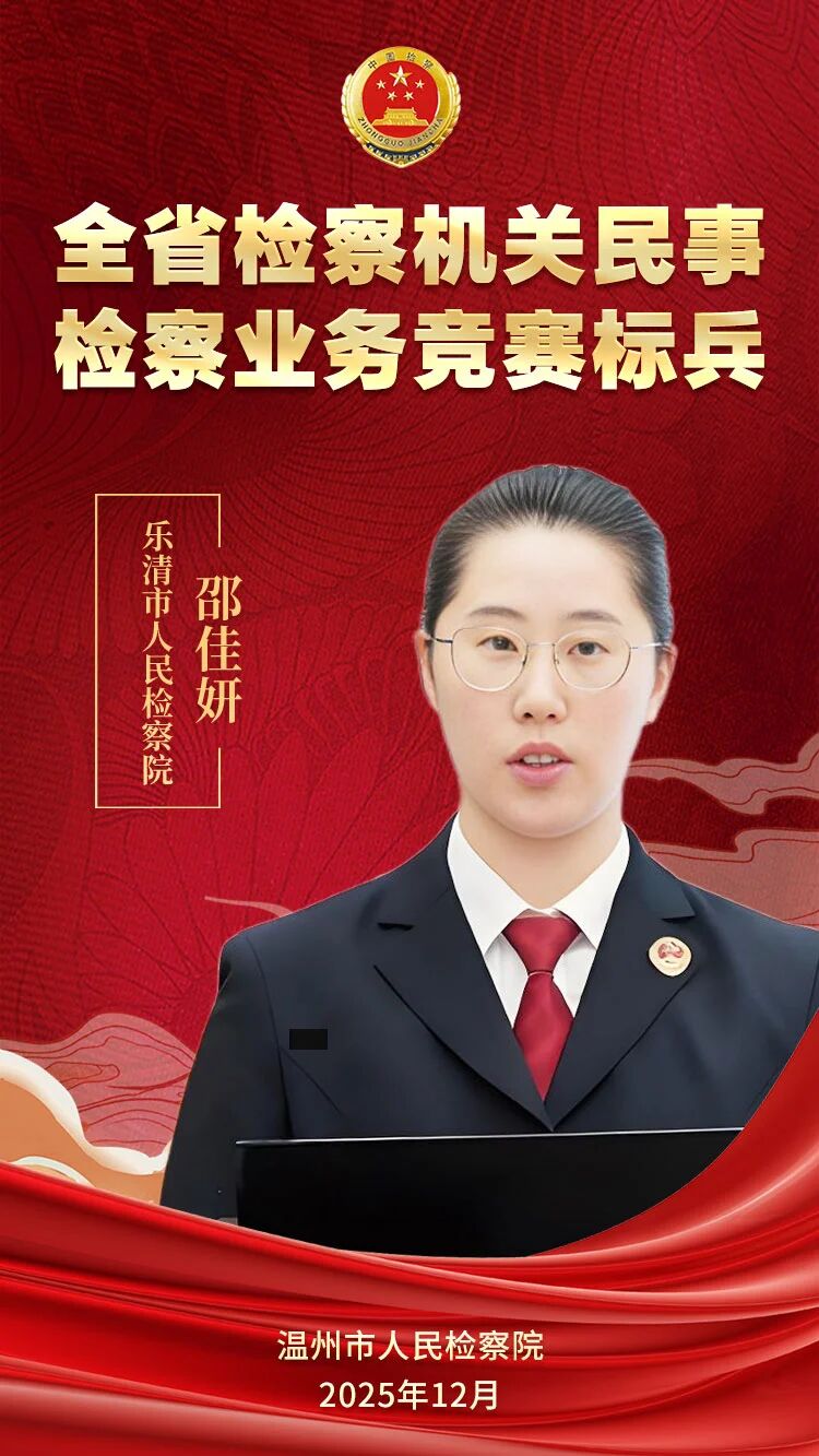 邵佳妍,现任乐清市人民检察院第六检察部检察官助理。从检两年以来,始终以“初学者”的姿态自觉学习、以“奋斗者”的精神勤勉履职,全身心投入民事检察各项核心业务,获评“温州市民事检察业务竞赛标兵”称号。她深刻认识到民事检察工作关乎人民群众切身利益与司法公信力,不断提升专业素养、认真履行监督职责,以高质效案件办理切实做到为权利护航、为正义撑腰。始终保持饱满的热情积极投入学习与实践,于错综复杂的法律关系中持续磨砺监督能力,曾参与办理黄金分期等案件,制发检察建议监督法院不予执行公证债权文书,成功打击不法分子以买卖合同为名行非法放贷之实的违法行为。深入钻研法律实务,围绕拒执案件办理中反映的“执行难”问题撰写信息材料,获省检察院采纳。在短暂而充实的工作历练中,迅速成长为一名踏实肯干、履职尽责的民事检察新生力量。
