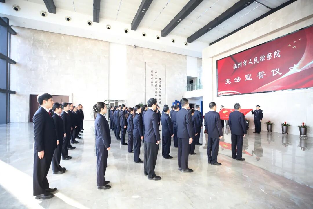 在各基层院的宣誓现场,气氛同样神圣庄严。干警们整齐列队,面向国旗与宪法,以最饱满的精神状态,许下对宪法的忠诚、对职业的敬畏、对人民的承诺,努力让人民群众在每一个司法案件中感受到公平正义。这一幅幅基层一线的宣誓画面,与市检察院的仪式交相辉映,共同构成了温州检察机关弘扬宪法精神、筑牢法治信仰的壮丽篇章。
