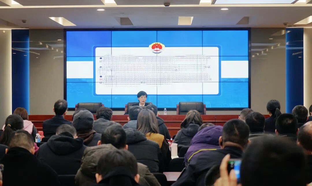 为强化行刑衔接工作,破解行刑衔接实践难题,提高行政执法水平,服务保障建设更高水平法治龙湾,近日,龙湾区检察院第二检察部员额检察官胡芳芳受邀参加行政执法与刑事司法衔接工作业务培训,以“行刑衔接案件取证规范要点”为题,为全区90余名行政执法骨干进行专题授课。