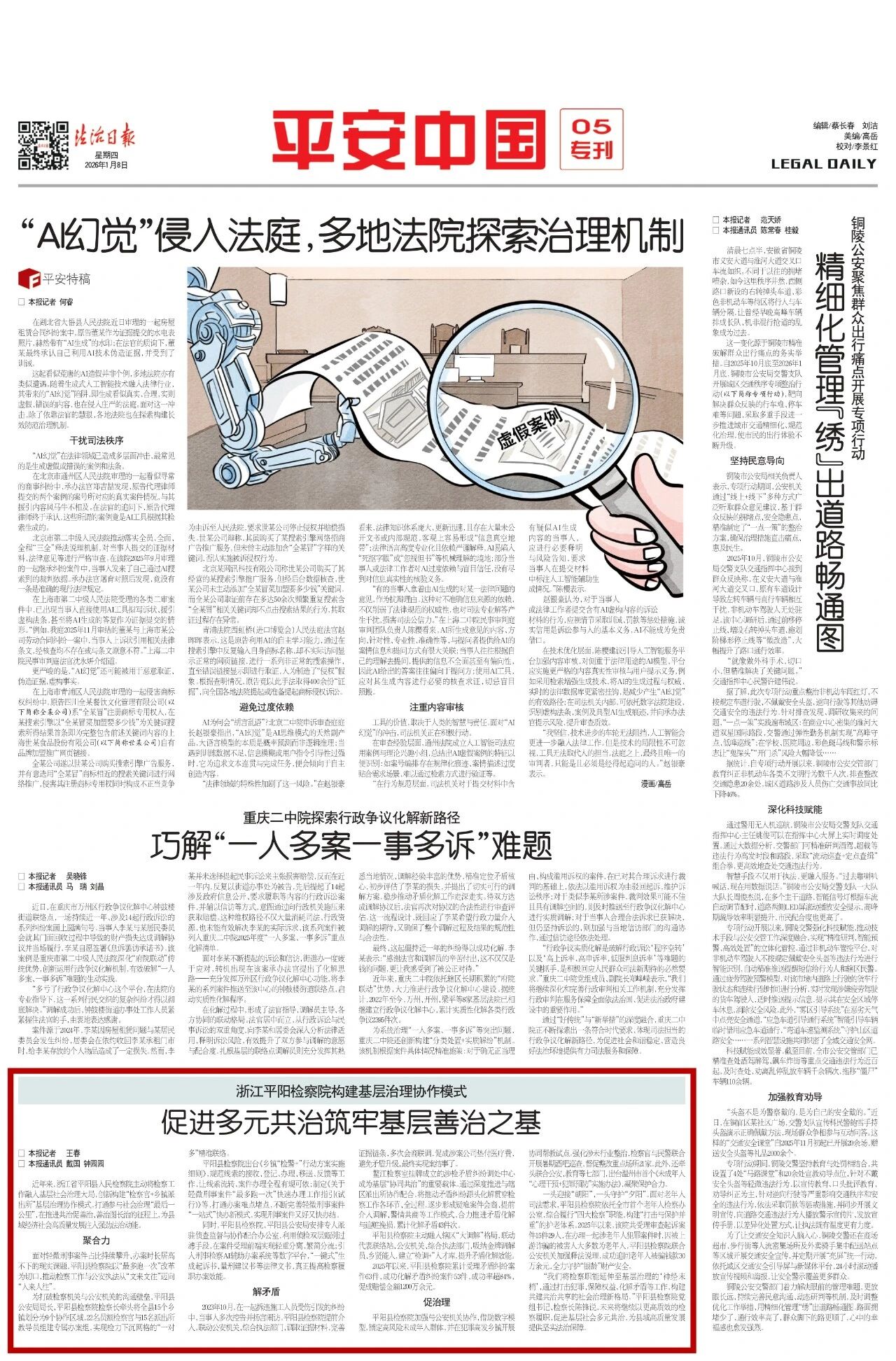 “我们将检察职能延伸至基层治理的‘神经末梢’,通过打击犯罪、保障权益、化解矛盾等工作,构建共建共治共享的社会治理新格局。”平阳县检察院党组书记、检察长陈锋说,未来将继续以更高质效的检察履职,促进基层社会多元共治,为县域高质量发展提供坚实法治保障。