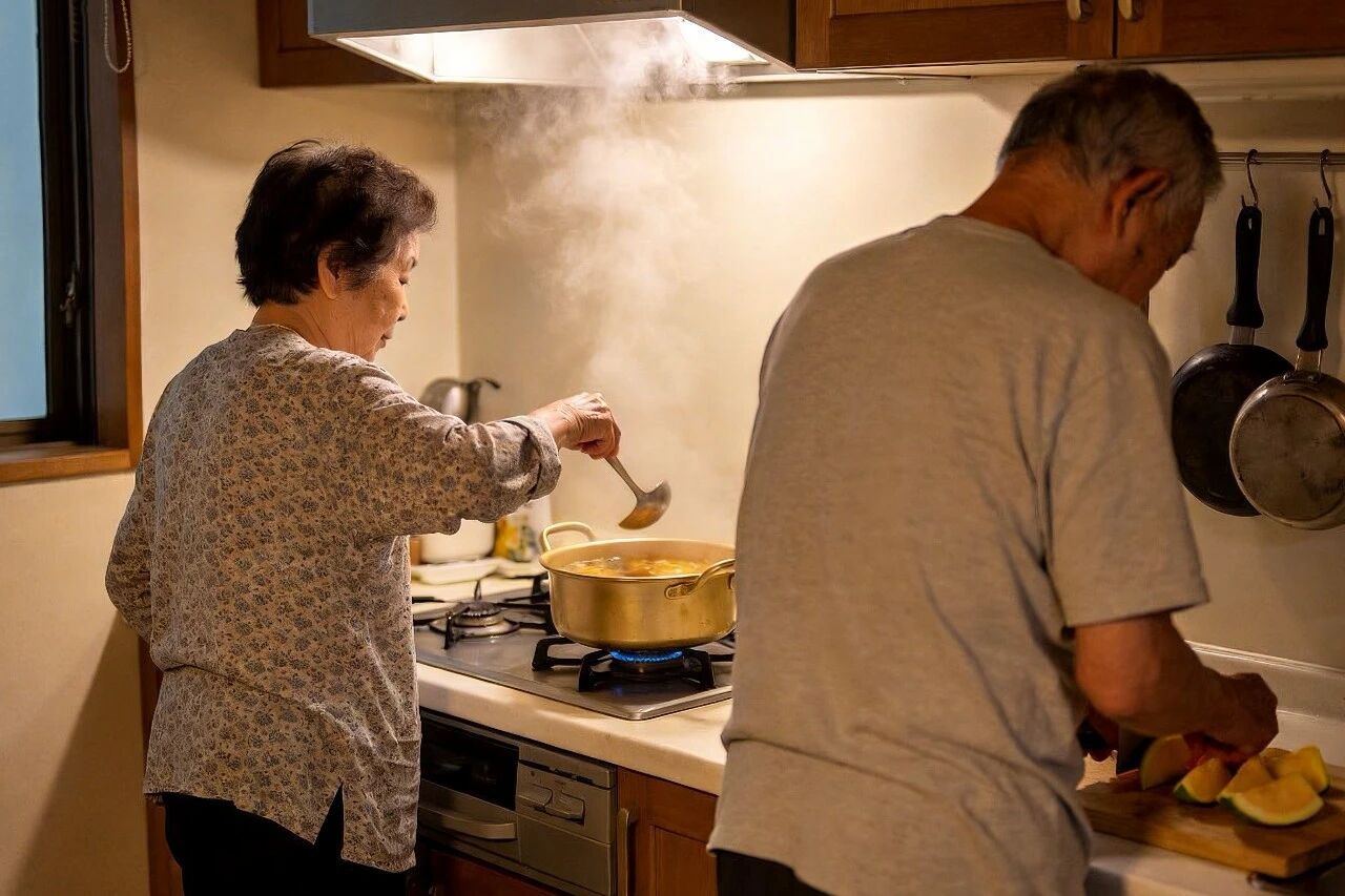 父亲总是安静地坐在客厅的旧沙发里,他看见我,只是微微颔首,目光却在我身上停留了许久,才缓缓说:“又堵车了吧?”我应了一声。我们之间的话总是不多。父爱如山,大抵如此。而母亲的爱,却是喧腾的、滚烫的,充满了整个屋子。厨房是她的王国。夜幕降临时,她便在那方小小的天地里调度着千军万马。灶上的蒸笼喷吐着白茫茫的蒸汽,锅里金黄的蛋饺滋滋作响。她像一位从容的将军,这边指挥着泡发的香菇、木耳,那边照应着腌渍好的鱼、肉。我倚在门边看她,她时而尝一口汤的咸淡,时而往我嘴里塞一块刚出锅的酥肉,然后急切地等着我的评价。“好吃!”我每每这样说,她便心满意足地转过身,继续忙碌,嘴里还念叨着:“你小时候最爱吃这个了。”